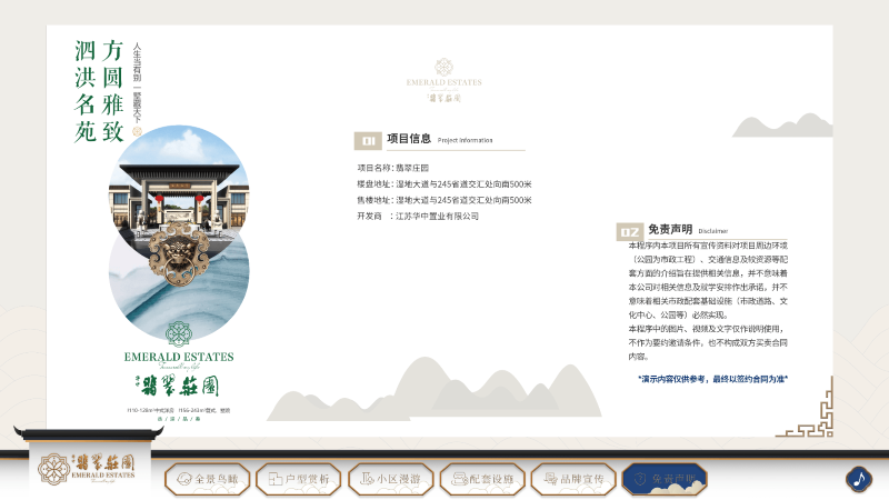- 免责声明:在小屏的下方菜单栏中点击“免责声明”,包含项目信息和房地产常规免责声明。