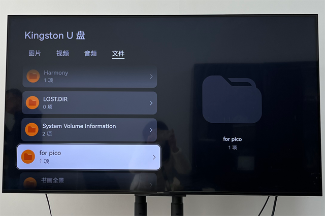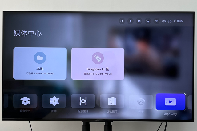 把U盘插到智能电视上,在媒体中心找到U盘中的文件下载