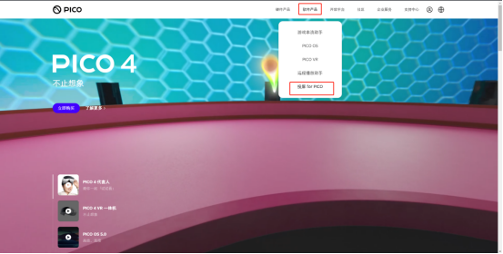进入PICO官网https://www.picoxr.com/,在软件产品栏下找到投屏for PICO下载到U盘